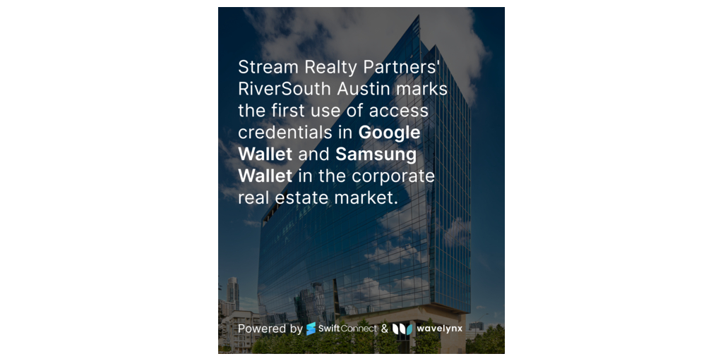 STAMFORD, Conn.–(BUSINESS WIRE)–$nxp #accesscontrol–SwiftConnect, the leader in connected access enablement, and Wavelynx, a provider of interoperable and secure access solutions, today announced that their deployment at Stream Realty Partners’ RiverSouth Austin marks the first use of access credentials in Samsung Wallet and Google Wallet in the corporate real estate market. Now, tenants and employees can use their Android device and Galaxy phone for easy and secure building access at Austin’s most intelligent building.